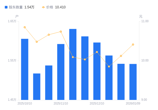 近一年(2025年1月10日至2026年1月9日),泰瑞机械A股股东户数从1。56万户,减低至1。54万户,区间股价上涨31。11%。