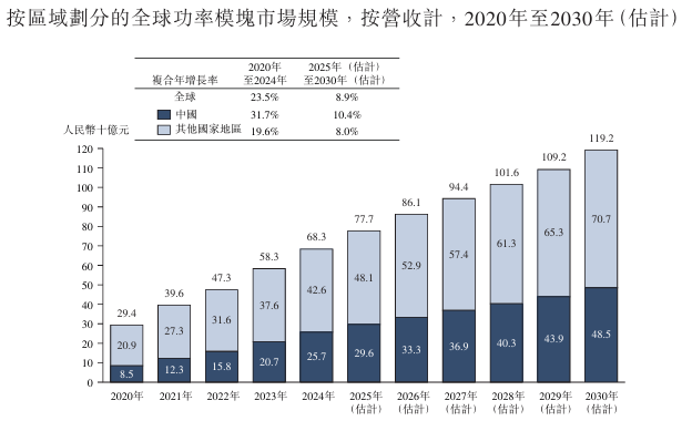 全球功率模块市场正在新能源汽车等需求带动下连结增加。市场规模由人平易近币294亿元增加至人平易近币683亿元,复合年增加率约23。5%;估计2025年至2030年,市场将以约8。9%的复合年增加率持续扩大,规模无望从2025年的人平易近币777亿元增加至2030年的人平易近币1,192亿元。