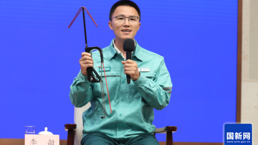 2023年3月,1000千伏泉乐线上呈现风筝挂线现患。其时风力较大,激光炮难以对准。李敏沉着搭载喷火安拆的无人机升空,精准悬停正在线下方,霎时熔断风筝线分钟就化解了危机,无人机成为名副其实的“空中清障员”。