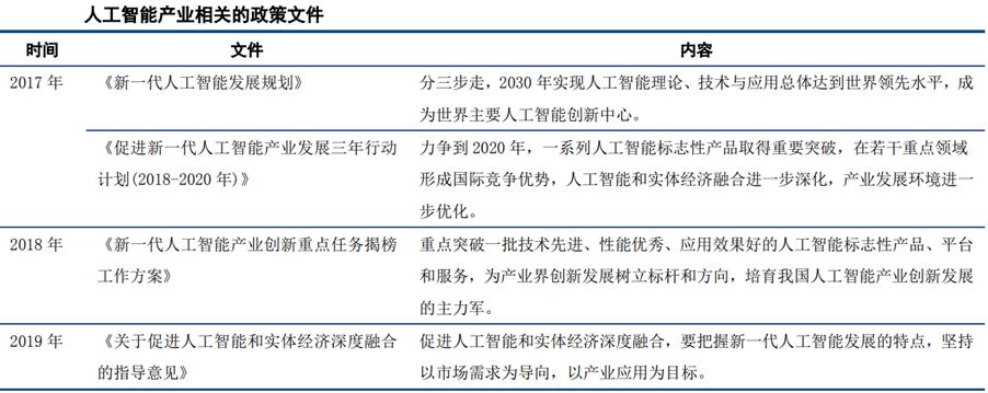 中国方面,以2015年《中国制制2025》出台为初步,人工智能被写入“十三五”规划纲要及工做演讲。2017年国务院发布《新一代人工智能成长规划》,将人工智能上升到了国度计谋层面。随后多部分接踵出台若干焦点政策和规划,为我国人工智能行业快速成长供给帮力。